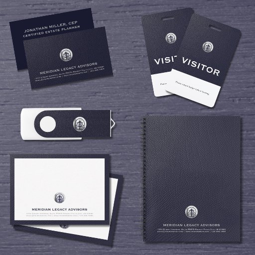 Deixe uma impressão duradoura com a nossa elegante cartão de visita de planejamento imobiliário. O impressão de couro azul e o emblema do logotipo prateado escovado com cantos arredondados oferecem um toque elegante, perfeito para planejadores imobiliários, advogados, conselheiros e qualquer profissional de negócios que queira deixar uma impressão duradoura. Conecte-se com confiança e mostre seus detalhes profissionais.
