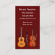 Aulas de música cartões de visitas de professores com três instrumentos gráficos de flauta, guitarra e violino, qualquer um que você possa remover se quiser