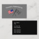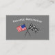 Cartões de visitas automotivos com um tema patriótico de corrida cruzam o gráfico e o nome da sua empresa, que aparece na frente e nos detalhes de contato no verso. Criado para um compro de reparo automático, mecânico de equipes de corrida ou restauração de carros musculares.