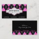 Cartões de visitas pretos de tendência de argyle rosa-quente, com padrão de estilo branco e rosa-quente. A parte inferior é de cor preta sólida. Uma faixa preta e rosa separa as duas partes. Sua empresa/nome é digitado em uma etiqueta elegante de umbragem com contorno preto e rosa. Design bonito e moderno com retrorreflector, que pode ser usado para muitas áreas de negócios como interiores, cabeleireiro, moda e muito mais.