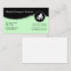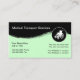 Cartões de visitas de transporte médico com imagem de um emblema de cadeira de rodas, texto e layout de texto que você pode personalizar, e cor verde clara de fundo que você pode mudar. Concebidos para temas empresariais relacionados com serviços para deficientes, transporte de cadeiras de rodas ou material médico.