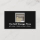 O Self Storage coloca cartões de visitas modernos criados a um gráfico de um localizador de armazenamento automático em segundo plano com o nome de sua empresa em destaque na frente.