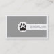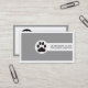 Clínica Veterinária, cartões de visitas minimalistas de pata preto, branco, cinzas, com pata preta num círculo branco. Cinza com bordas brancas. Um design de excelente para veterinários ou serviços de clínica/hospital para animais de companhia.