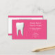 Cartão de visita dentário cor-de-rosa com um dente branco, com cartão de compromisso no verso