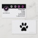 Cartões de visitas dos cuidados dos animais de estimação com imagem de impressões de um cão e da pata do na moda com uma grande disposição que do texto você pode personalizar agora! Cartão de cuidados dos animais de estimação moderno que faz um grande cartão de visita para um groomer do animal de estimação, groomer móvel do animal de estimação, baby-sitter do animal de estimação ou cão preparando, obediência ou treinamento, canil, ou hospital de animais.