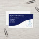 Cartões de visitas do armazenamento do barco com âncora do barco e fundo azul e branco, junto com a grande disposição do texto você pode personalizar agora. Os melhores cartões de visitas projetados como um modelo de cartão de negócios para uma facilidade do armazenamento do barco, deslizamentos do barco, ou porto.