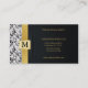 Cartões de visitas elegantes do damasco para designer de interiores e coordenador do casamento. Preto e branco com guarnições Dourados. elpmonogram