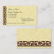 Cartões de visitas personalizados simples com um elemento medieval ao longo da borda do design em marrom em um fundo faux parergs. Clique em Personalizar para alterar fontes, dimensionar, mover elementos para trás e até salvar seu design personalizado para mais tarde.