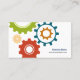 Modelo customizável dos cartões de visitas com logotipo colorido das rodas denteadas que formam um mecanismo de engrenagem abstrato.