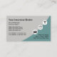 Corretor de seguros ou design de cartão de visita de agente em um moderno e elegante design e imagem de um símbolo doméstico, automóvel e médico que representa o seguro dos proprietários de casas, o seguro médico e o seguro automóvel. Projetado para um agente, agência, representante independente ou corretor. Apresentado em papel de cartão de visita de canto arredondado.