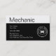 Modelo dos cartões de visitas do mecânico com um design novo que inclua o mecânico da palavra em uma disposição simples mas corajosa na parte dianteira, com todos seus informação do negócio e informações de contacto e emblema perito original do mecânico. Projetado para um auto mecânico, um operador, ou um engenheiro automotriz profissional.