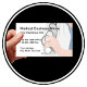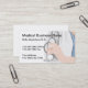 Cartões de visitas do tema médico em um simples layout com o médico no fundo segurando um estetoscópio. Concebido para profissionais médicos, como um Médico, Enfermeiro ou Enfermeiro Registrado.