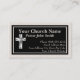 Um toque clássico de preto e linho acentua seus cartões de visitas de Nome da Igreja para Pastor, Padre, Deacon e outros clérigos. Ele foi projetado com uma elegante cruz metálica prateada. #Cristão #Católico