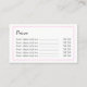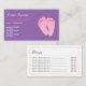 Cartões de visitas para reflexologists. As características de design um pares de pés cor-de-rosa. A parte traseira do cartão tem o espaço para os preços de até seis artigos a ser entrados.