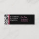 O cartão de visita do salão de beleza com as listras à moda da zebra projeta e disposição que moderna do texto você pode personalizar agora. Use estes cartões de visitas para introduzir no mercado e promover-se em uma maneira barata! Os melhores cartões de visitas para os temas relativos a um cabeleireiro, a um salão de beleza do prego, a um armário do cabelo, ou a uma sala de estar de beleza. Você poderia igualmente usar este como um cartão de visita da forma ou o cartão de visita na moda da loja de móveis em um mini formato de cartão de visita acessível.