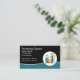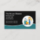 Este modelo de cartão de visita de serviço de limpeza editável exclusivo é criado com um caractere profissional de limpeza segurando um esfregão e inclui modelos de texto que você pode editar e personalizar com suas próprias informações sobre empregada ou empregada doméstica.