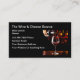 Cartões de visitas temáticos de vinho e bebidas espirituosas concebidos com um gráfico clássico de um copo de vinho a ser derramado de uma garrafa de vinho sobre fundo negro para um toque de classe. Trabalha para um Bartender, loja de vinho ou profissional de provando de vinho.