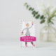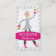 Mulher de Delish ou cozinheiro chefe de pastelaria fêmea com o sabor europeu, vestindo calças e os saltos altos listrados em cinzento e profundamente - rosa para uma padaria ou cozendo o negócio. Veste o chapéu de um cozinheiro chefe alto, a jaqueta do cozinheiro chefe swingy e as posses enchido e um biscoito dos pedaços de chocolate. Fundo listrado astucioso e placa conhecida cor-de-rosa.