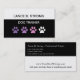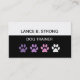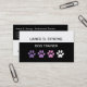 Cartões de visitas de treinamento de cães coloridos de tendências com patas coloridas de cães com cores de designer impressas no fundo deste layout editável lateral que você pode personalizar e personalizar. Projetado para treinador de cães, escola de obediência ou treinamento de animais de estimação.