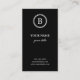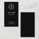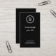 Este design elegante com fundo preto (frente e verso) e texto branco apresenta um círculo branco no topo para o seu monograma/inicial. Personalizar para adicionar/remover campos ou ajustar o alinhamento do monograma conforme necessário. A cor de fundo escura pode ser alterada conforme desejado.