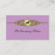 Cartões de visitas elegantes da preparação do animal de estimação com acentos metálicos simulados do ouro, um símbolo do impressão da pata do animal de estimação, e texto bonito no roteiro extravagante na parte dianteira, com toda sua informações de contacto pertinente na parte traseira você pode personalizar ao seu gosto. Projetado para um groomer do animal de estimação, um salão de beleza do animal de estimação, ou um serviço dos cuidados dos animais de estimação.