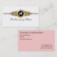 Cartões de visitas elegantes da preparação do animal de estimação com acentos metálicos simulados do ouro, um símbolo da silhueta do cão de caniche, e texto bonito no roteiro extravagante na parte dianteira, com toda sua informações de contacto pertinente na parte traseira você pode personalizar ao seu gosto. Projetado para um groomer do animal de estimação, um salão de beleza do animal de estimação, ou um serviço dos cuidados dos animais de estimação.