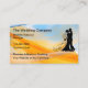 Cartões de visitas do tema do casamento de tendências elegantes desenhadas com um gráfico elegante de casal de casamento e um cenário moderno de abstrato, juntamente com o layout clássico do cartão de visita em um modelo editável. Trabalha para um oficial de casamento, local de casamento, planejador ou serviço de planejamento.