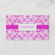 Cartões de visitas elegantes do coordenador do casamento tema damasco. Rosa e branco.