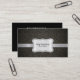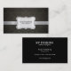 Cartões de visitas personalizados para designer de interiores. Preto e obscuridade - damasco cinzento com acentos de prata metálicos.