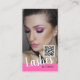 Cartão de visita de código QR de rede moderno com 2 fotos para maquiagem de artista, na moda de cabelo, lascas ou extensões unhas para pequenas empresas. Esta moderna cartão de visita de código de barras digitalizável do cosmetólogo chic é uma boa maneira de promover e envolver-se com o seu cliente, compartilhando mais informações sobre sua empresa usando o código QR, conectando-se às suas mídias sociais ou adicionando seu logotipo para fins de marca.