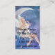 Os cartões de visitas temáticos da fantasia com uma fada loura com borboleta branca voam o assento em uma lua.