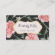 Um pêssego vintage / design floral cor-de-água rosa em um fundo de cinza escuro. Pequeno quadro de ouro no centro com seu nome e cargo. A parte traseira é um cor-de-rosa/cor-de-pêssego claro com texto de cinza para suas informações de contato. Fácil de personalizar. Elegante, na moda, moderno, perfeito! O produto não contém folha de ouro.