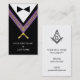 Um cartão de visita de roxo clássico e de ouro freemason para entregar todos os seus eventos masônicos. Na frente dessa cartão de visita masônica personalizada está a joia do mestrado adorável sobre um smoking preto e gravata arco. O fundo é branco e mostra um quadrado e bússola. Este cartão complementa outros cartões de programa freemason personalizados, convites e muito mais nesta coleção. Excelente para sua instalação anual de oficiais...