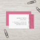 Cartões de visitas modernos e elegantes apresentam uma borda direita de linhas geométricas negras negras negras com uma camada inferior de bloco colorido de cor rosada de baga. Adicione seu nome e título/profissão/empresa e três linhas de informações de contato. Cartões invertidos a cor-de-rosa de framboesa sólido com seu nome ou nome de empresa destacado no centro.