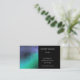 Um cartão de visita à moda para algum ocupação ou negócio. O lado esquerdo tem um gráfico martelado azul e verde do metal. O lado direito é preto com texto branco. A parte traseira martelou o gráfico do metal no rosa.