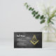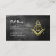 Esses cartões de visitas masônicos personalizados certamente serão notados. Único em design, esse modelo de cartão de negócios elegante, de lado solteiro, foi projetado para soltar as pedras. A frente desta placa profissional apresenta um quadrado dourado e um logotipo de alvenaria em cima de um laço de fundo de cinza escura pintado manualmente. Papel de qualidade? O exemplo mostrado é impresso em um estoque de cartão grosso, mas há várias opções disponíveis. Opcionalmente, você pode personalizar para trás com mais informações ou simplesmente deixar vazio para escrevendo. Categoria: cartão de visita e modelos freemasonry. Cores: cinzas escuras, cinzas de carvão, preto e ouro.