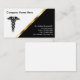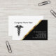 Cartões de visitas médicos com design moderno que inclui um símbolo médico, uma linha geométrica com aparência elegante, um simples design cartão de visita que o vamos personaliza e muda a cor preta de fundo se quiser. Eu desenhei este modelo de cartão de negócios como um design único e moderno para um profissional de saúde, clínica médica ou qualquer negócio da indústria de saúde.