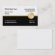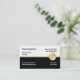 Modelo de cartão de negócios médico em um design de classe com um símbolo médico caduceus dourado e layout de texto que você pode personalizar online. Um olhar distinto faz um cartão de visita excelente para qualquer um que seja médico, enfermeiro, enfermeiro, médico ou envolvido em cobrança médica ou registros digitais.