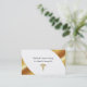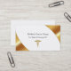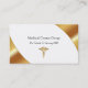 Design de modelo de cartão de visita de clássico com aparência de escala superior que inclui símbolo médico de cor dourada, elementos design de cor dourada e cor branca de fundo que você pode alterar ou deixar como está. Todas as informações de contato e da empresa organizadas no segundo lado. Projetado para um consultório médico, clínica médica ou seguro de saúde.