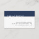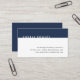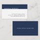 Olhar para a design moderna tem uma sensação minimalista em marinho e branco nítidos. Os cartões de visitas apresentam seu nome em branco em uma banda de marinho azul, com três linhas de informações de contato na parte inferior direita. Cartões inverso a azul marinho sólido com seu nome ou escolha de texto personalizado centrado em letras brancas modernas.