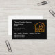 Modelo de design com cartão de visita de serviço de limpeza clássico editável com o logotipo de limpeza a cores douradas e o layout clássico com modelos de texto on-line que você pode personalizar. Criado para serviços comerciais ou residenciais de limpeza, empregada doméstica, serviços de empregada doméstica ou faxina.