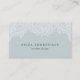 Cartões de visitas de chic apresentam um fundo aqua suave com uma cobertura de delicada renda paisley no alto em tom em tons pastel, moldando seu nome e profissão ou título. Adicione os detalhes de contato do cheio ao verso em letras azuis de meia-noite. Uma escolha encantadora para qualquer profissão; amostra mostrada para as profissões de design de interiores.