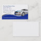 Cartões de visitas para automóveis com design azul legal, imagem de um carro rápido e cor branca de fundo que você pode mudar se quiser. Projetado para um compro corporal que conserta destroços de carro, reparo geral de carros ou um mecânico de carros.