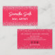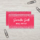 Cartão de visita para artista ungueiro com brilho falso e fundo rosa quente. Cartões de clientes empresariais do Salon Proprietário ou do unhas doméstico em estilo.