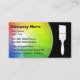 Cartões de visitas de pintura com fundo colorido da roda num arco-íris de cores juntamente com um pincel de tinta e um layout de texto que é fácil de personalizar. Concebidos para temas relacionados com pintura caseira, pintor contratado, pintor comercial ou revestimentos e suprimentos de tinta.