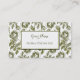 Cartões de visitas personalizados elegantes com script de ouro e quadros de letras de bloqueio dentro um quadro de ouro em um padrão de fundo de rosas de safra em branco e dourados, restaurados a partir de um manuscrito antigo. Seu nome e título nosso nome comercial vão para a frente, o verso tem espaço para seu telefone, email, site e endereço.