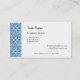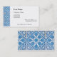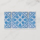 Cartões de visitas personalizados com um padrão de fundo azul e branco do azulejo falso Delft. Clique em Personalizar para alterar as cores de fundo, fontes, adicionar texto personalizado e muito mais, até salvar seu design para mais tarde.