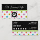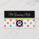 Coloque cartões de visitas coloridos com design colorido, uma impressão de pata de animais de estimação e um layout de texto de excelente que você pode personalizar agora! Também inclui caixas de seleção de fidelidade do cliente que você pode usar para promover negócios repetidos. Perfeito para qualquer tema de cartão de visita relacionado ao aliciamento de animais de estimação, serviço de animais de estimação, babá de animais de estimação ou butique de animais de estimação.