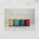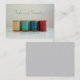 Este cartão caracteriza uma imagem de quatro carretéis da linha em vermelho, em azul, em verde, e o amarelo. Excelente para alfaiates ou costureiras.