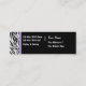 Design de cartão de visita de salão com na moda zebra listra gráficos e layout de texto editável moderno que você pode personalizar on-line. Use essas cartões de visitas para comercializar e se promover de forma barata! Melhores cartões de visitas para temas relacionados a salão de cabelo, salão de unhas, cômoda ou salão de beleza. Você também poderia usar isso como um cartão de visita de moda ou um cartão de visita de designer de moda em um formato mini cartão de visita.